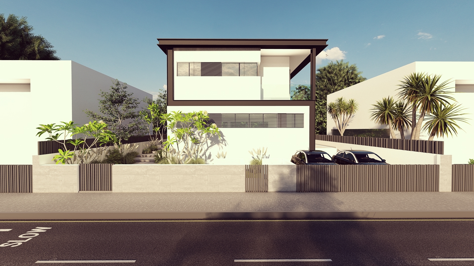 Two houses with a common wall These two houses are built for two families with different needs. One house with an area of 420 square meters for a young couple with small children who required us to make the house accessible for a stroller. The other house with an area of 400 square meters for a religious couple who host their family on weekends.